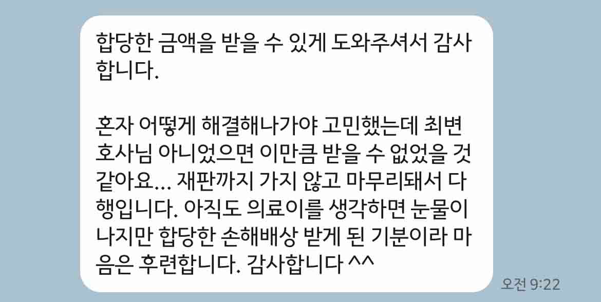 [의료전문변호사] 하나하나 자문 해주시고 도움주셔서 감사합니다.